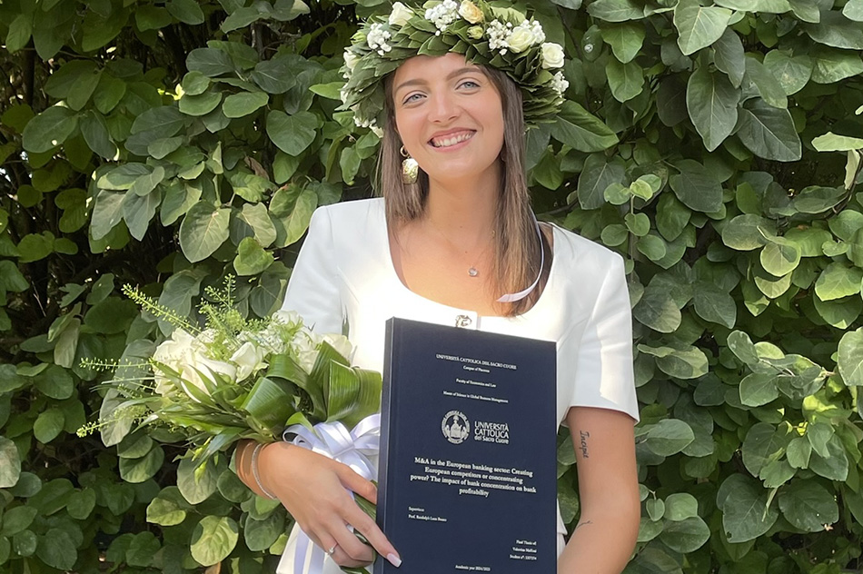 Valentina è cresciuta in un piccolo paese tra Cremona, Bergamo e Brescia. Durante la pandemia ha scelto l’Università Cattolica del Sacro Cuore per l’eccellenza accademica e per la possibilità unica di unire un percorso di studi in economia con quello delle lingue straniere.