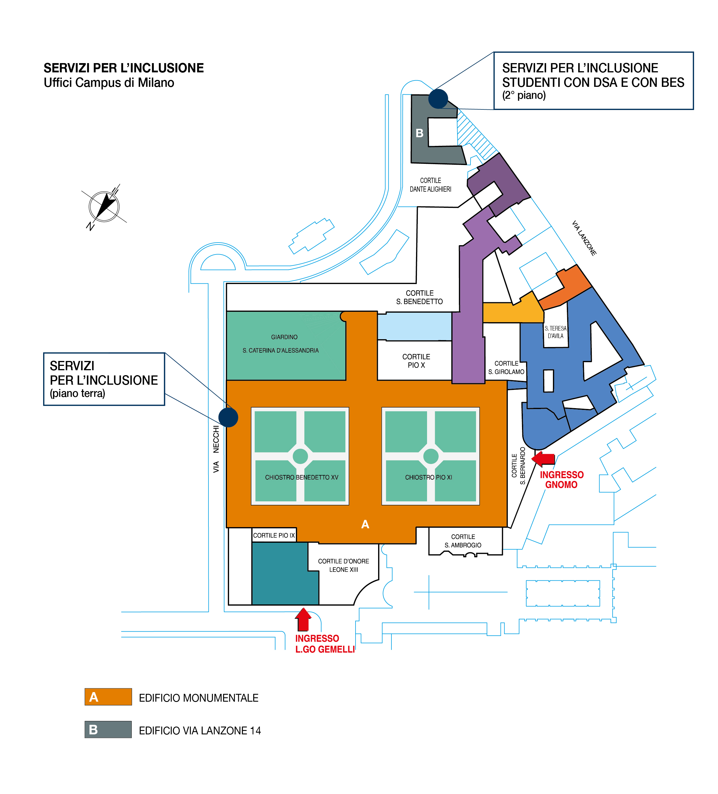 Segreteria dedicata agli studenti con Disturbi Specifici dell’Apprendimento (DSA) e con Bisogni Educativi Speciali (BES): L.go Gemelli 1 - edificio di via Lanzone 14 - 2° piano