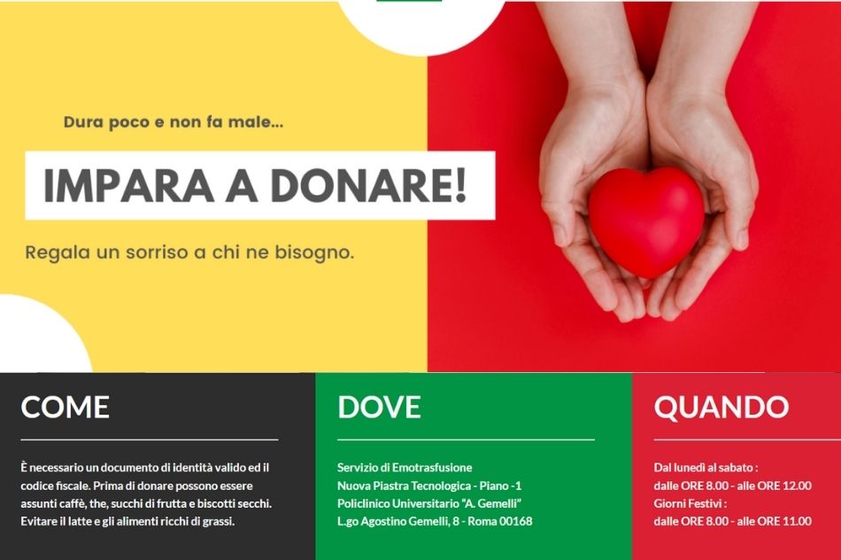 Donare il sangue, nessun rischio, tanti vantaggi. Ogni anno centinaia di migliaia di pazienti in Italia continuano a vivere grazie alla possibilità di effettuare trasfusioni di sangue, plasma o piastrine, ma ci sono ancora troppe difficoltà dovute al numero insufficiente di donatori.