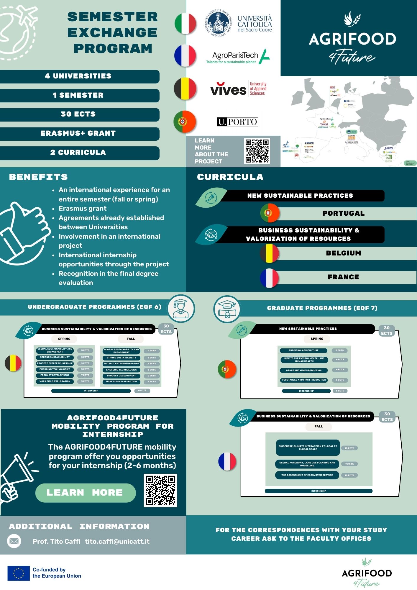 Sulla base di un’approfondita analisi dei bisogni del mondo del lavoro nel settore Agri-Food è stato definito un semestre exchange volto a integrare, tramite un’esperienza all’estero in centri di ricerca e formazione universitaria leader a livello europeo nell’ambito agroalimentare, le competenze degli studenti di Laurea Triennale e Magistrale.